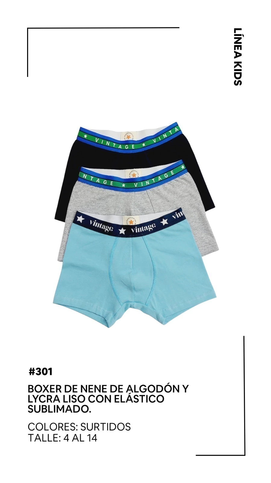 Boxer niño algodón lycra liso . Talles : 4 al 14 . Colores Surtido. -Colores surtidos, sin elección