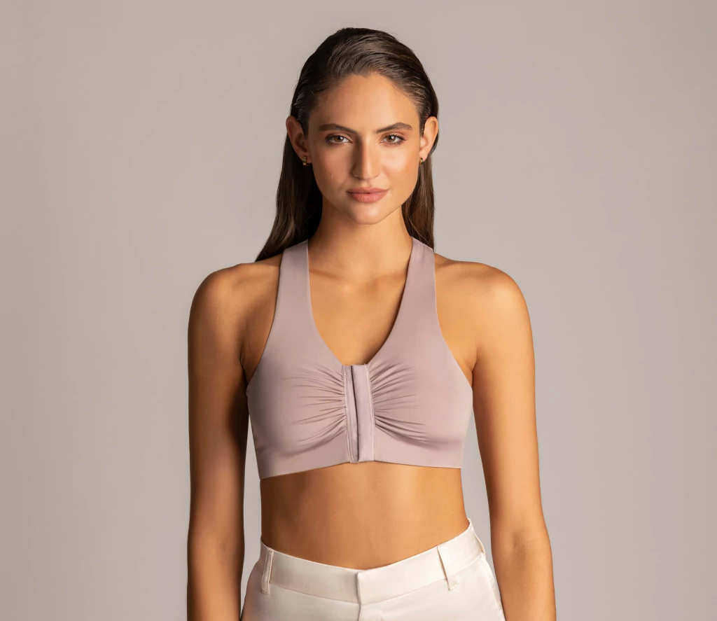 Corpiño postoperatorio sin taza de microfibra con broche delantero