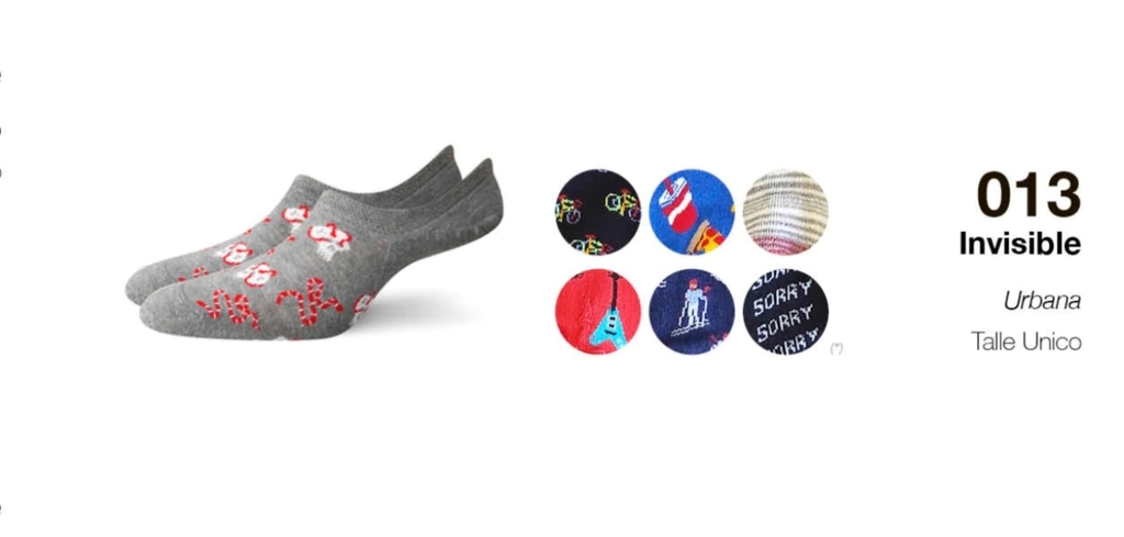 Docena cerrada de medias invisibles estampadas, de hombre. Art. 13.